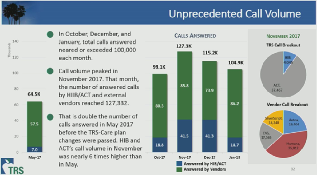 - TRS provided presentations on the customer service issues, including increased phone call volume.